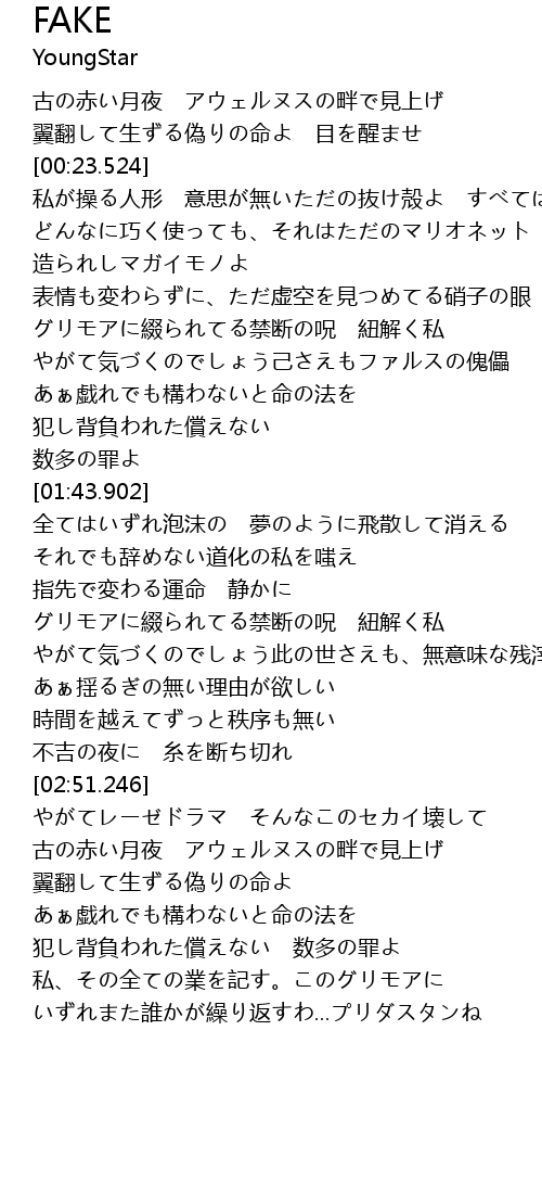 | [01:18.903] | やがて気づくのでしょう己さえもファルスの傀儡 |