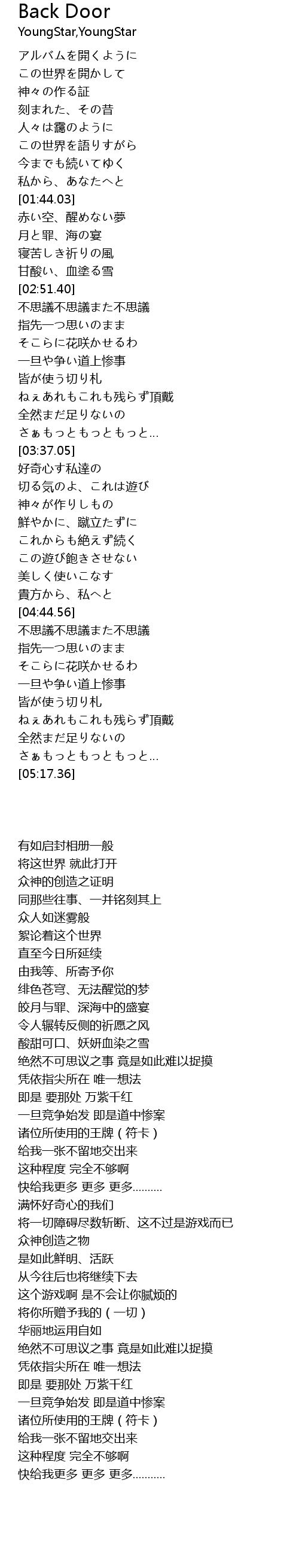 | [01:56.65] | 甘酸い、血塗る雪 |