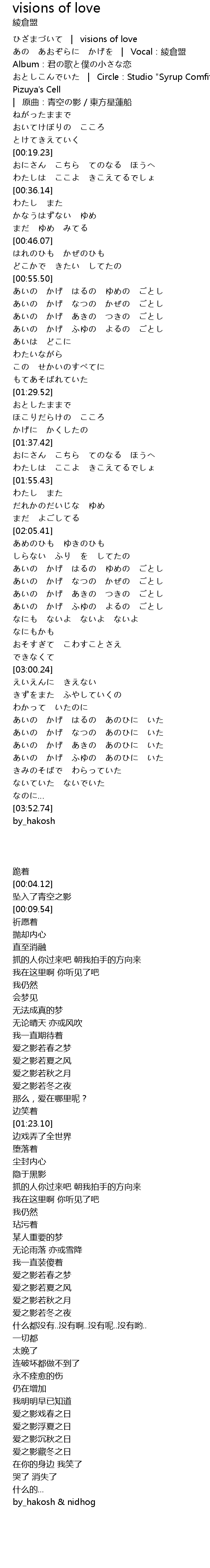 | [00:55.76] | あいの かげ はるの ゆめの ごとし |