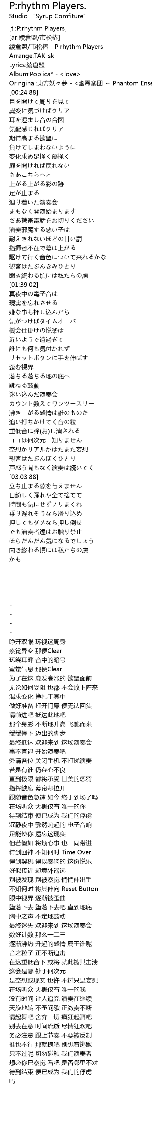 | [00:00.00] | 綾倉盟/市松椿 - P:rhythm Players |
