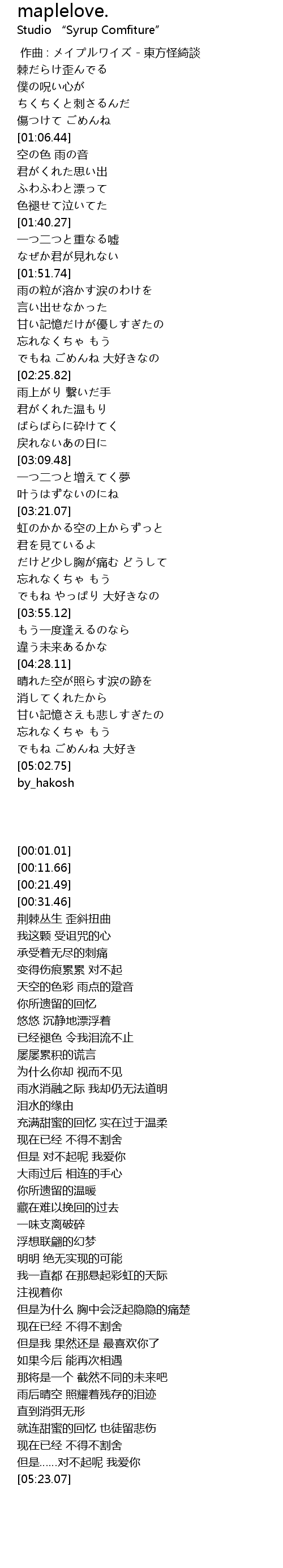 | [02:14.41] | でもね ごめんね 大好きなの |