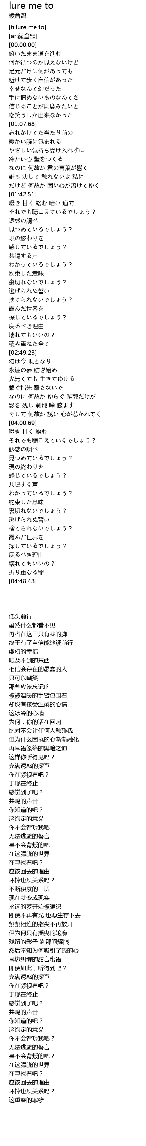| [01:43.17] | 囁き 甘く 絡む 暗い 道で |