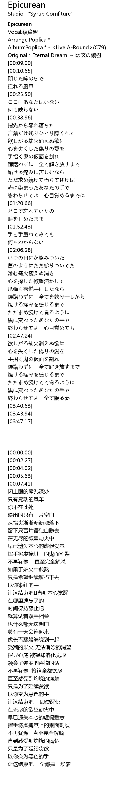 | [00:05.63] | Album: Poplica Live ARound C79 |