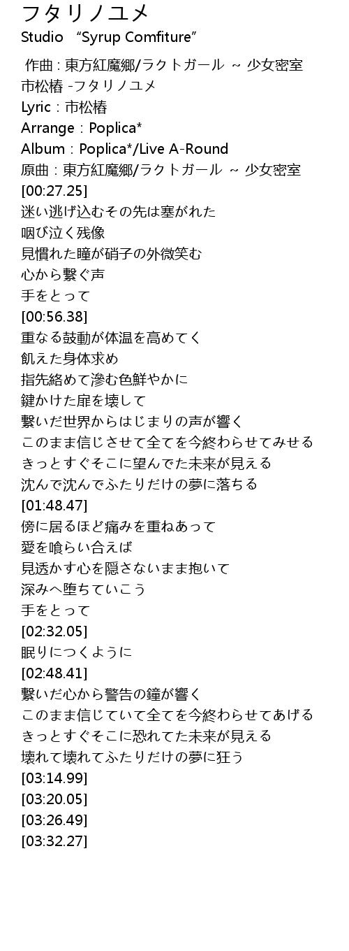 | [00:00.00] | 市松樁 -フタリノユメ |