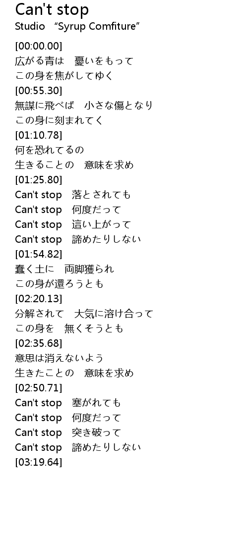 Can't stop 塞がれても |