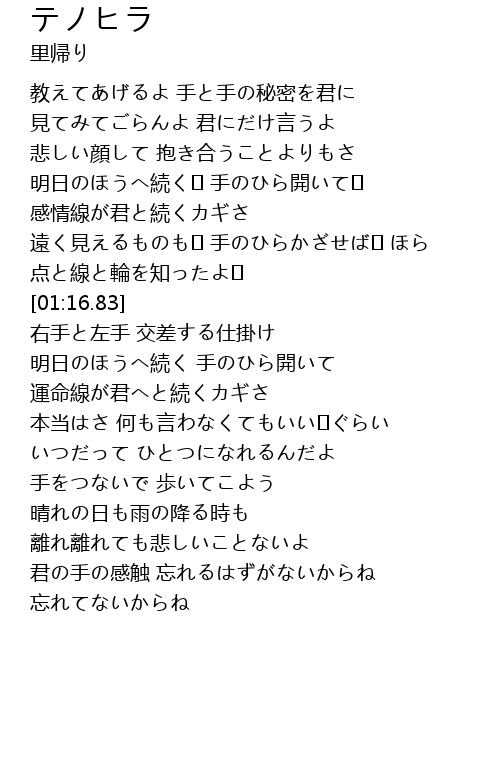 | [00:07.26] | 教えてあげるよ 手と手の秘密を君に |