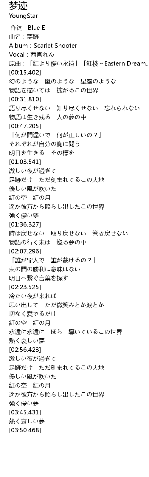 | [00:11.357] | 原曲:「紅より儚い永遠」「紅楼~Eastern Dream...」 |