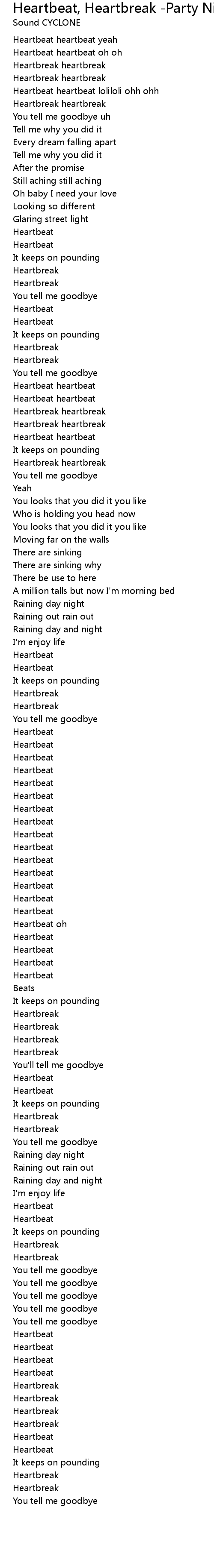 Heartbeat, Heartbreak -Party Night mix- Lyrics