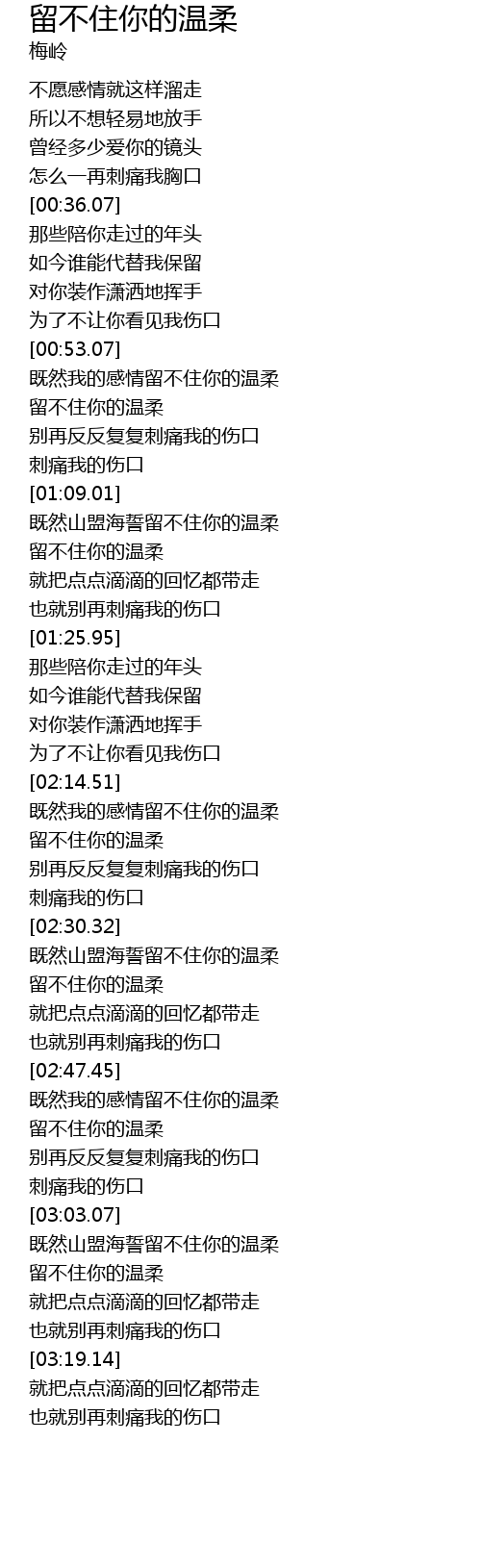 | [02:34.89] | liú bú zhù nǐ de wēn róu |
