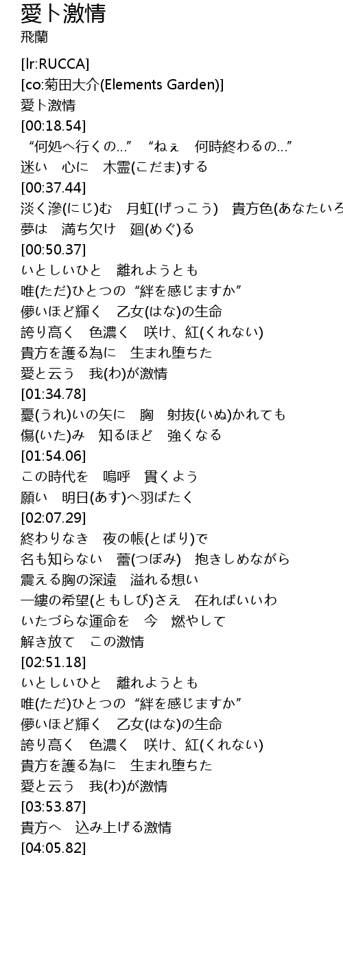 | [00:00.54] | 愛ト激情 |