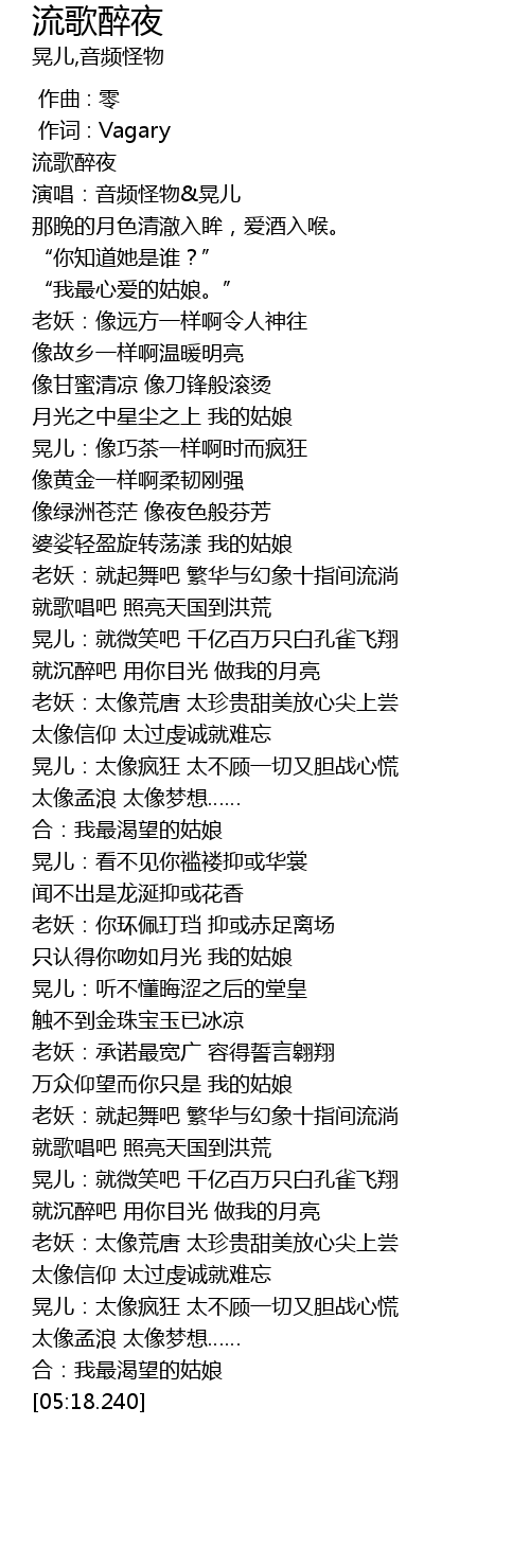 | [00:05.090] | 演唱:音频怪物&晃儿 |