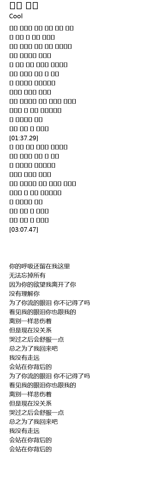 | [00:17.95] | 너의 숨소리 아직 내게 남아 있어 |
