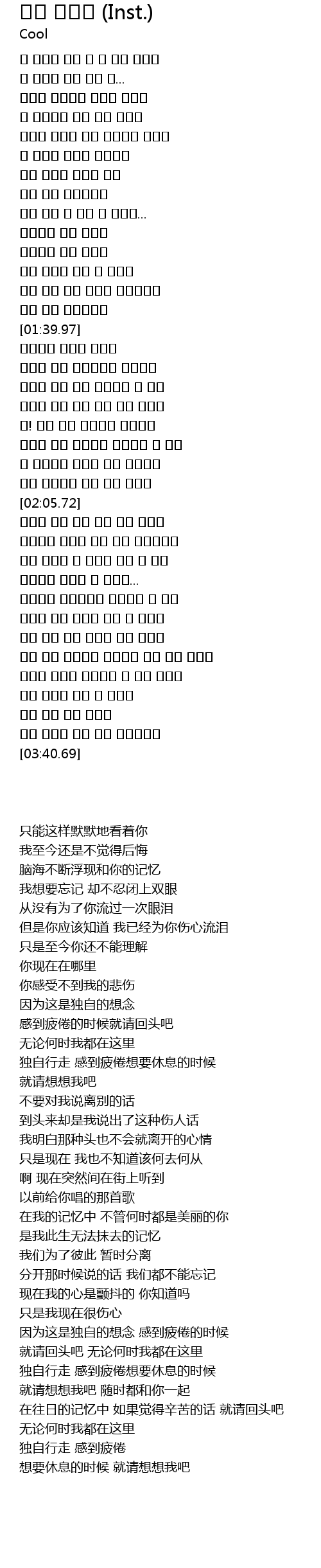 | [02:34.52] | 있는거라 말해도 잊을 수가 없을테니까 |