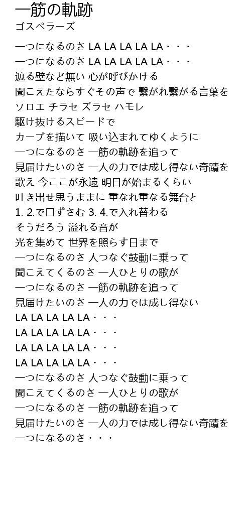 | 一つになるのさ 一筋の軌跡を追って | |
