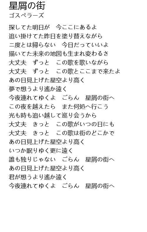 | [04:09.80] | 今夜連れてゆくよ ごらん 星屑の街へ |
