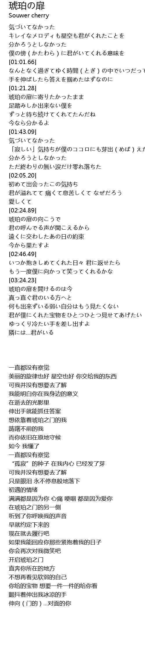 | [01:21.48] | 琥珀の扉に寄りたかったまま |