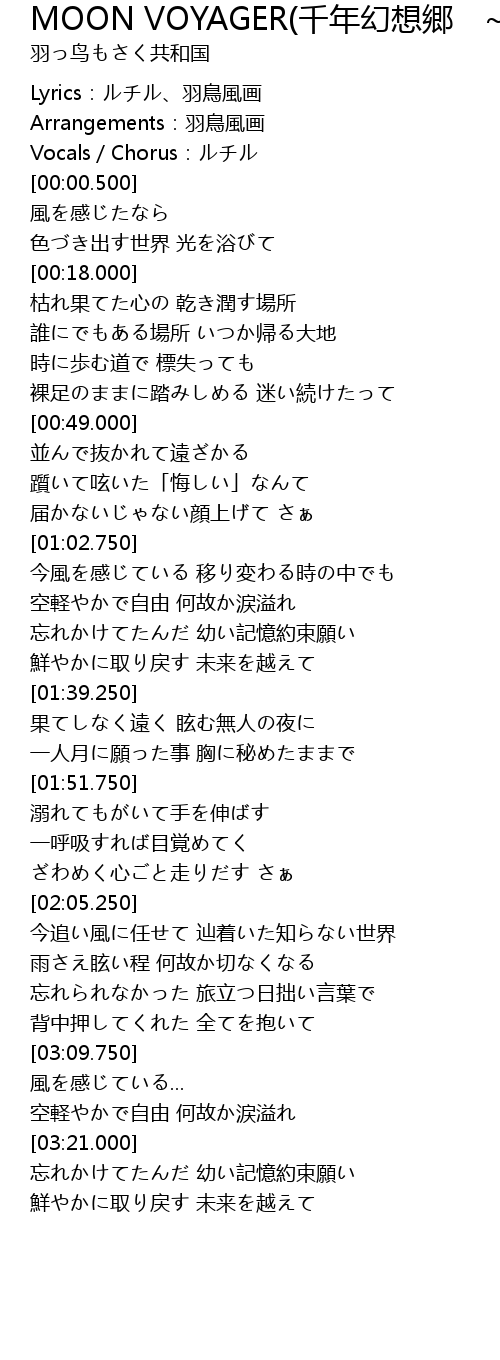 | [03:16.125] | 空軽やかで自由 何故か涙溢れ |