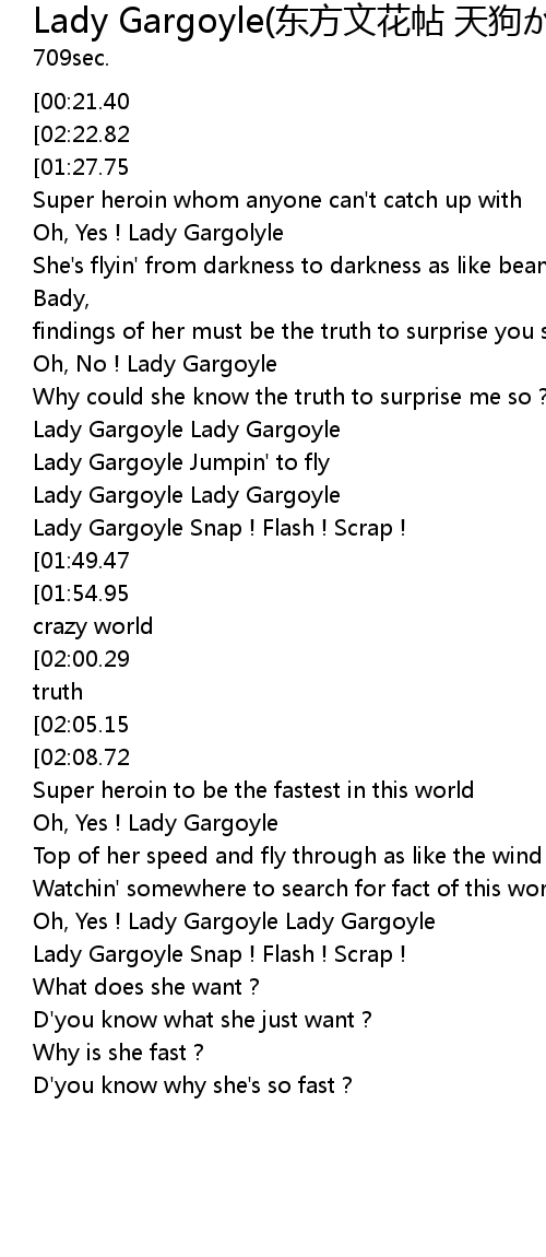 | [00:15.56] | Oh, Yes ! Lady Gargolyle |