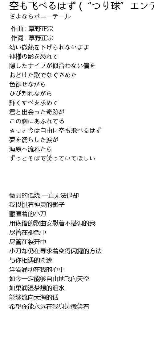 | Song | 空も飞べるはず (“つり球”エンディングバージョン) |