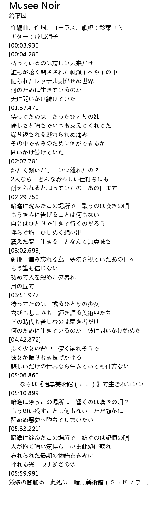 | [05:59.991] | 幾多の闇飾る 此処は 暗黒美術館(ミュゼ·ノワール) |