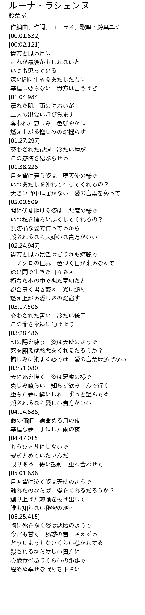 | [00:00.000] | 作編曲、作詞、コーラス、歌唱:鈴葉ユミ |