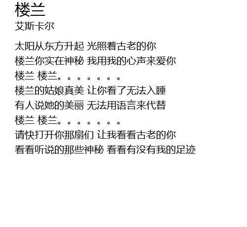 | [01:10.30] | 楼兰 楼兰。。。。。。。 |