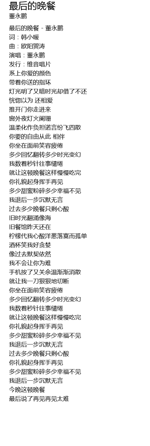 | [00:02.32] | 最后的晚餐 - 董永鹏 |