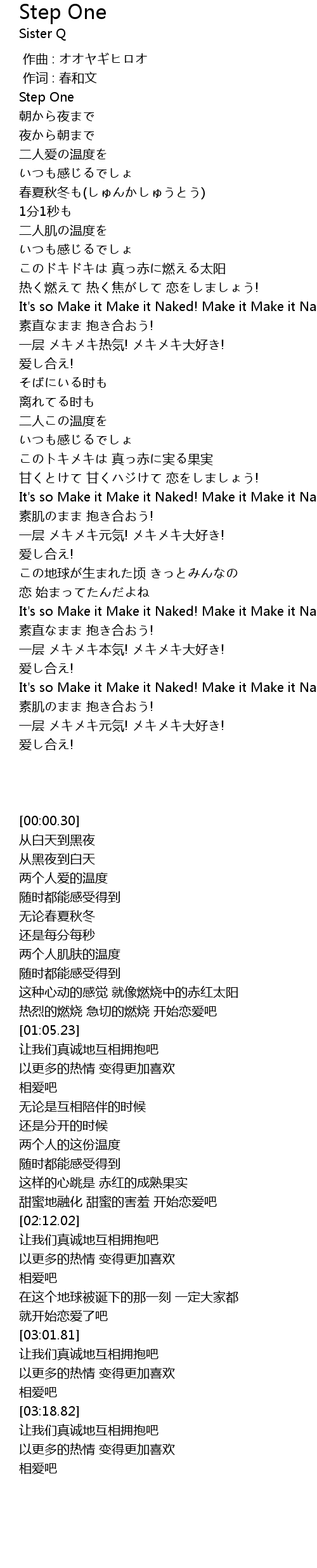 | [03:01.81] | It's so Make it Make it Naked! Make it Make it Naked! |