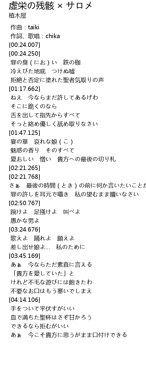 | [02:35.599] | 罪の許しを耳元で囁き 私の望むまま贖いなさい |