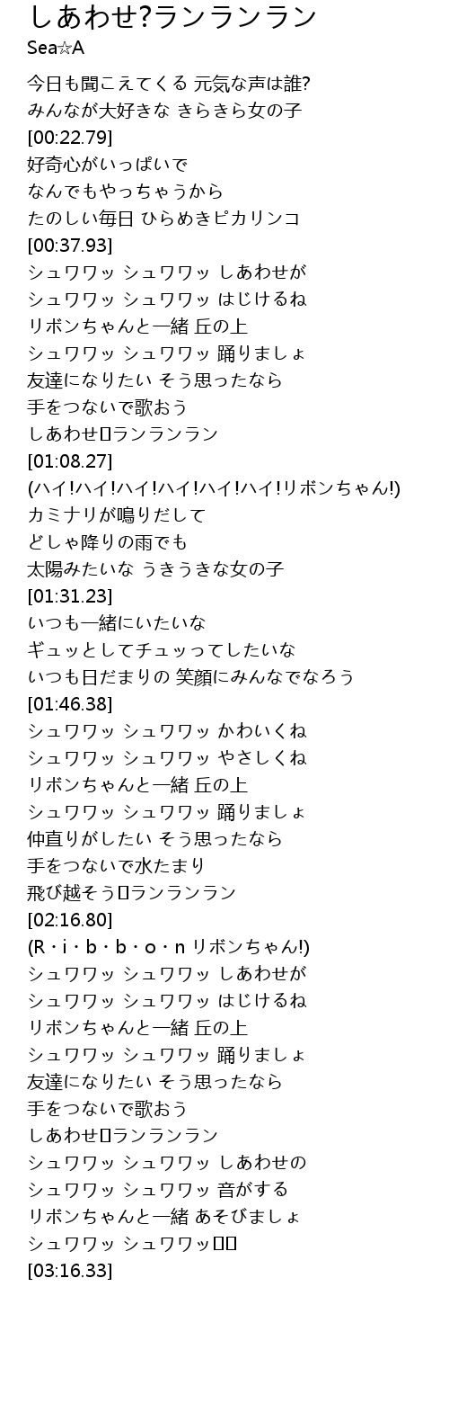 | [02:58.93] | しあわせ♪ランランラン |