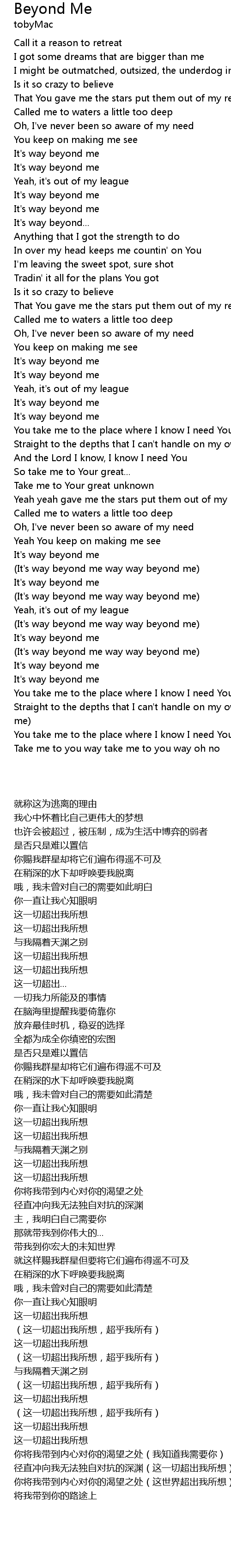| [01:05.67] | In over my head keeps me countin' on You |