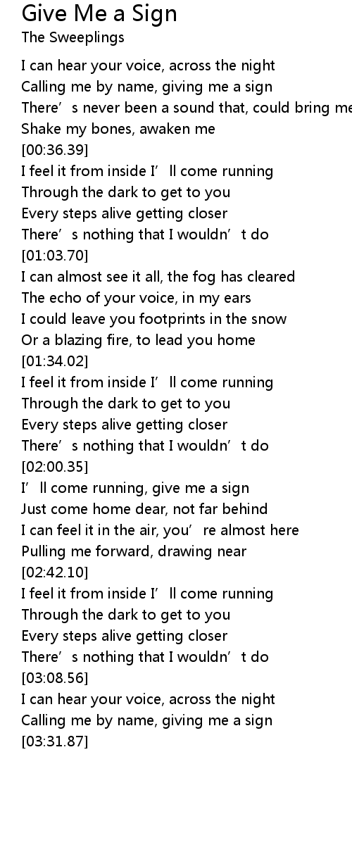 | [02:10.80] | I' ll come running, give me a sign |