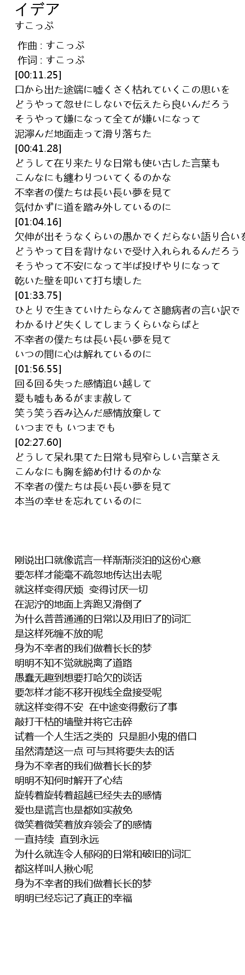 | [00:54.54] | 不幸者の僕たちは長い長い夢を見て |