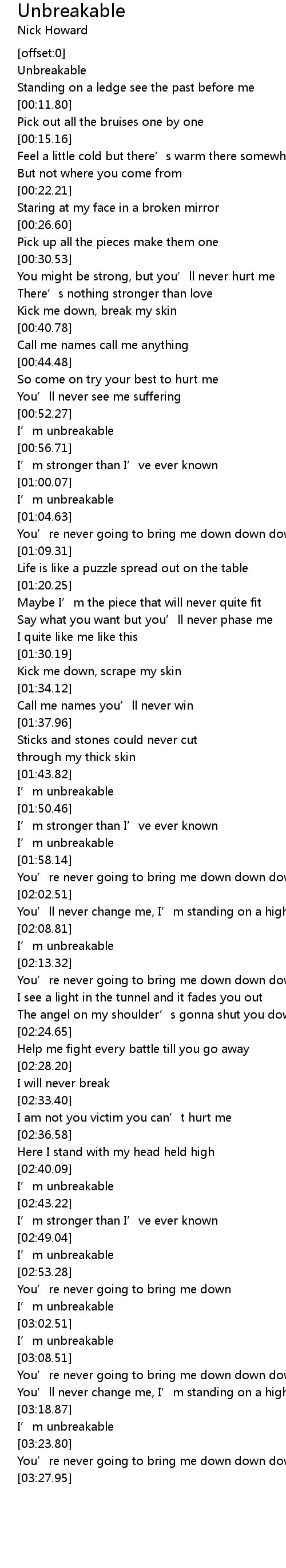 | [01:51.46] | I’m stronger than I’ve ever known |