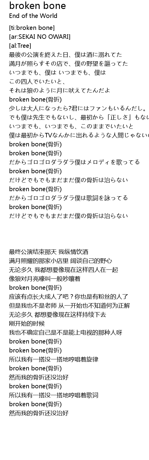 | [02:01.330] | だけどでもでもまだまだ僕の骨折は治らない |