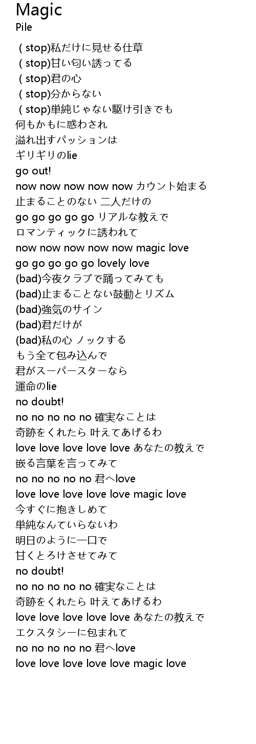 | [02:43.300] | 奇跡をくれたら 叶えてあげるわ |