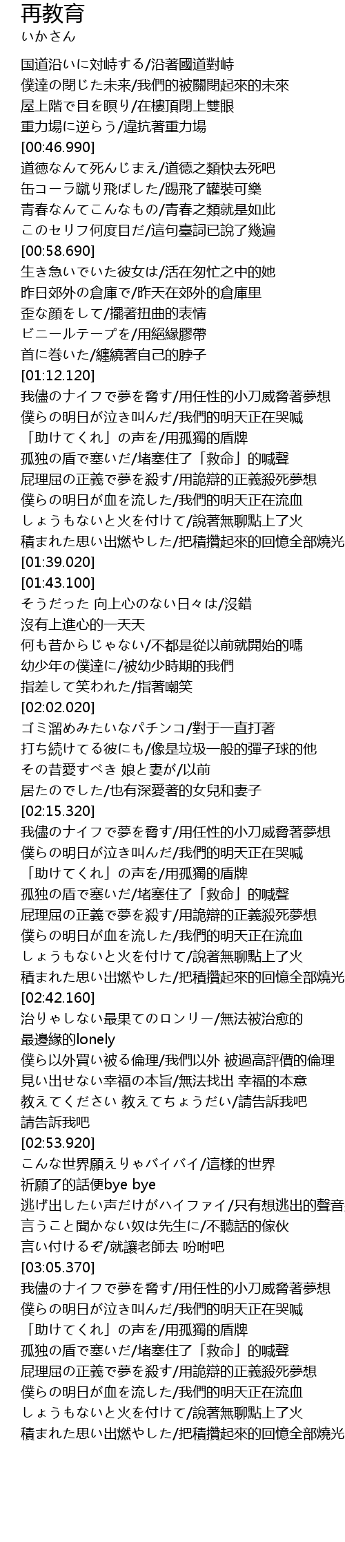 | [03:17.340] | 屁理屈の正義で夢を殺す/用詭辯的正義殺死夢想 |