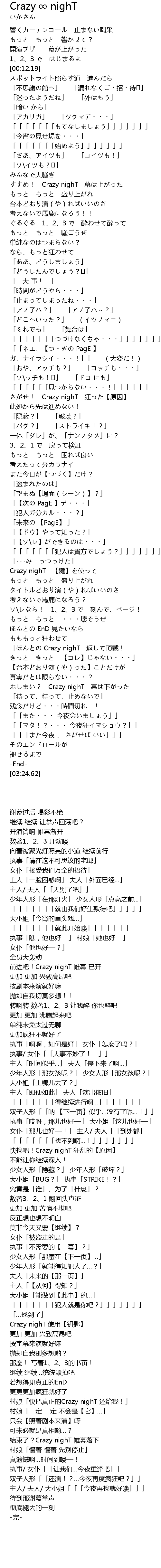 | [03:04.56] | おしまい? Crazy nighT 幕は下がった |