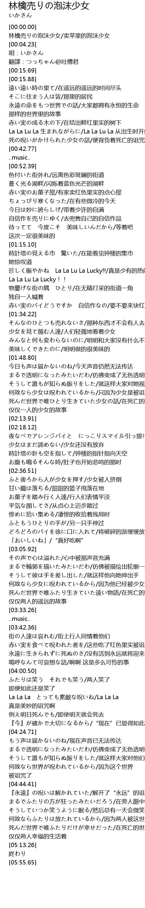 | [00:00.36] | 林檎売りの泡沫少女/卖苹果的泡沫少女 |