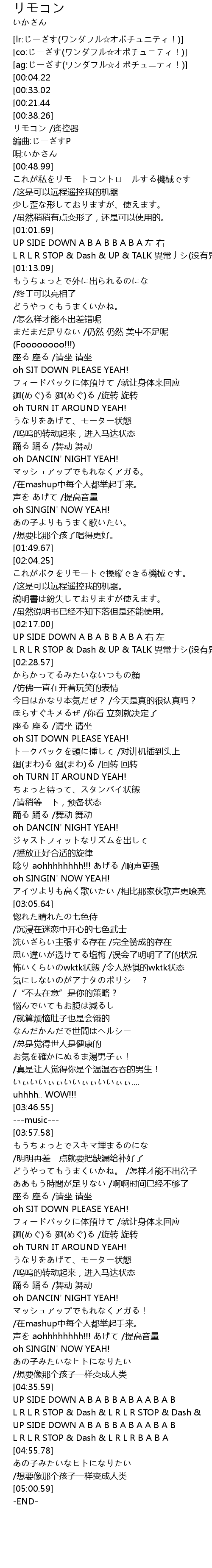 | [00:15.52][00:33.02] | L R L R STOP & Dash & UP & TALK B B A B S(tart) |