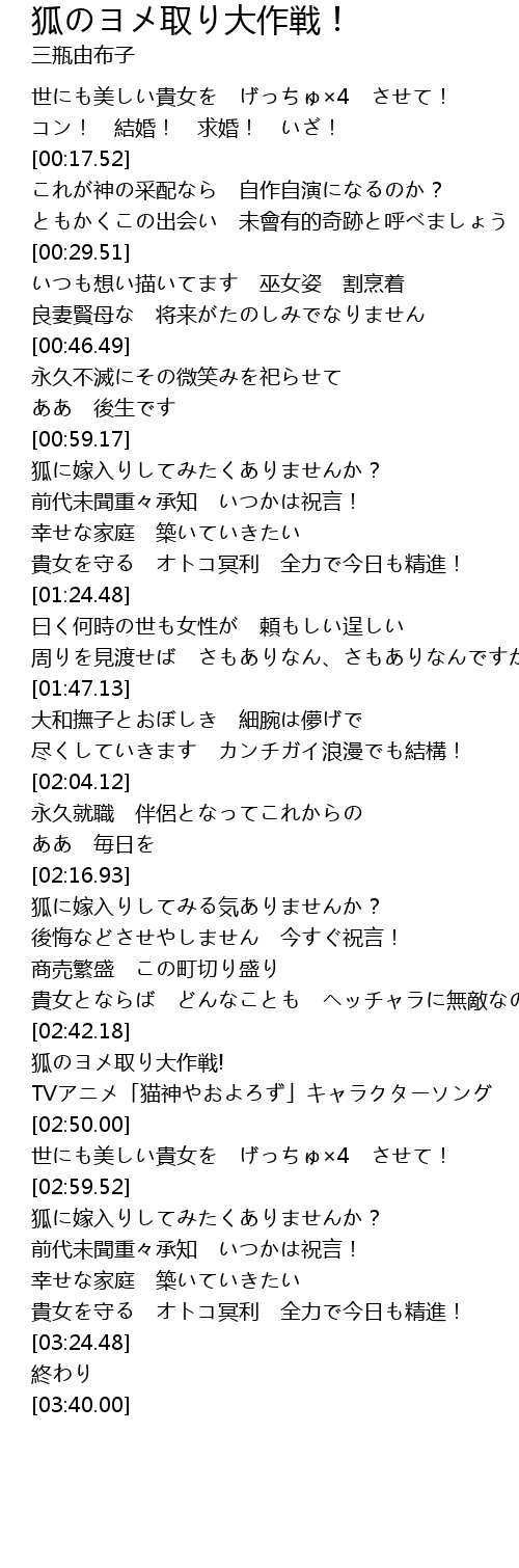 | [03:00.24] | 狐に嫁入りしてみたくありませんか? |