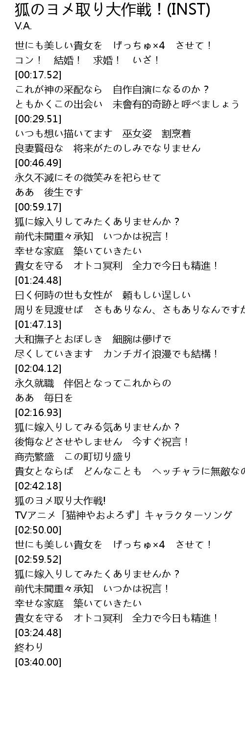 | [03:00.24] | 狐に嫁入りしてみたくありませんか? |