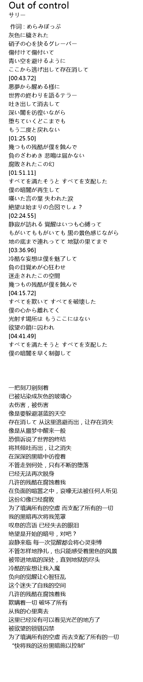 | [04:47.99] | 僕の暗闇を早く制御して |