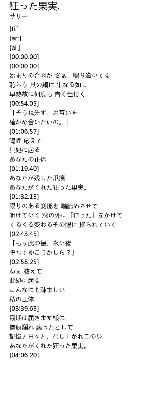 | [03:58.06] | あなたがくれた狂った果実。 |