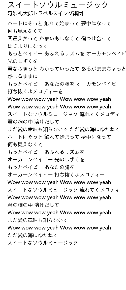 | スイートなソウルミュージック 流れてくメロディ 君の胸の中 溶けだして | |