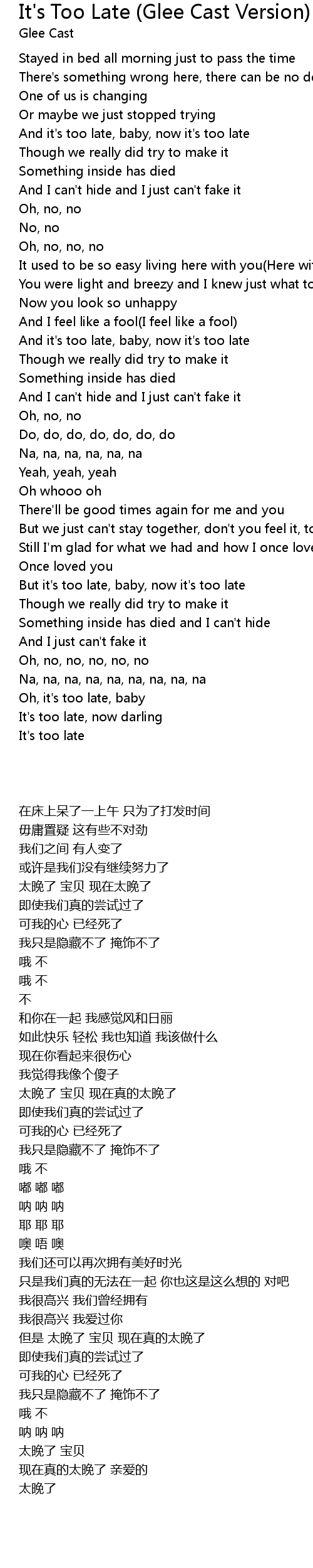 Oh, it's too late, baby |