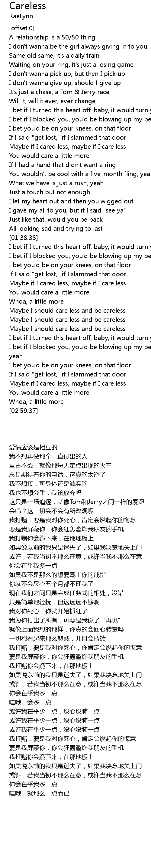 | [01:58.81] | Maybe if I cared less, maybe if I care less |
