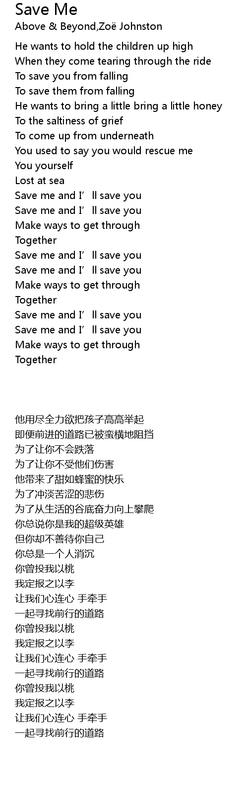 | [02:41.000] | Save me and I' ll save you |