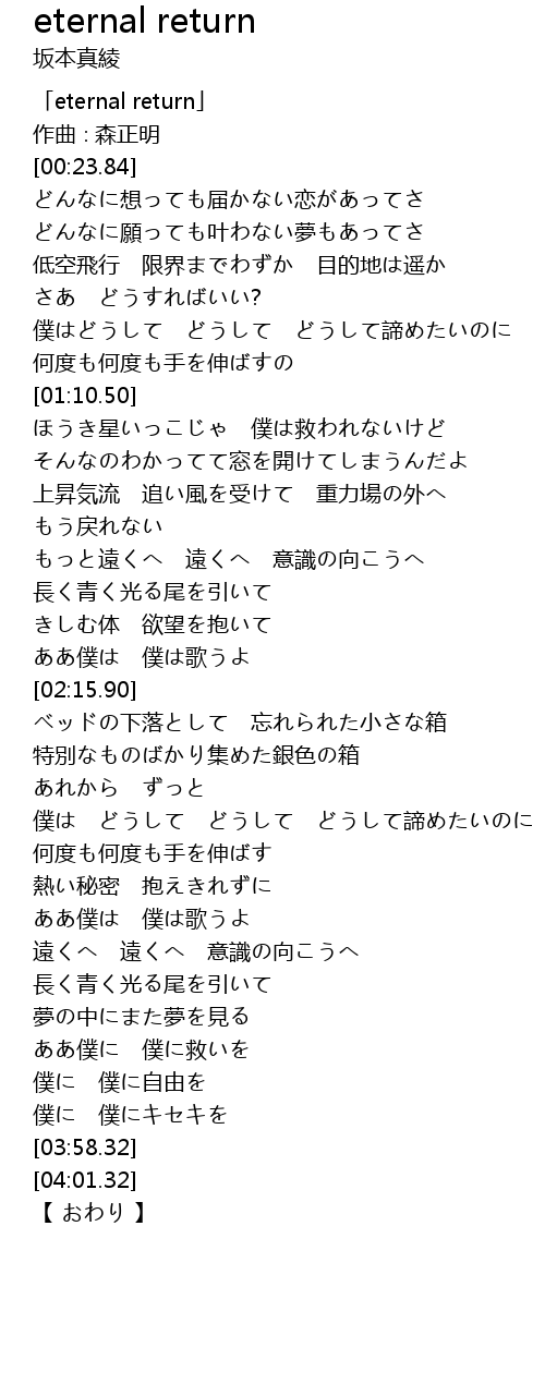 | [02:38.18] | ベッドの下落として 忘れられた小さな箱 |