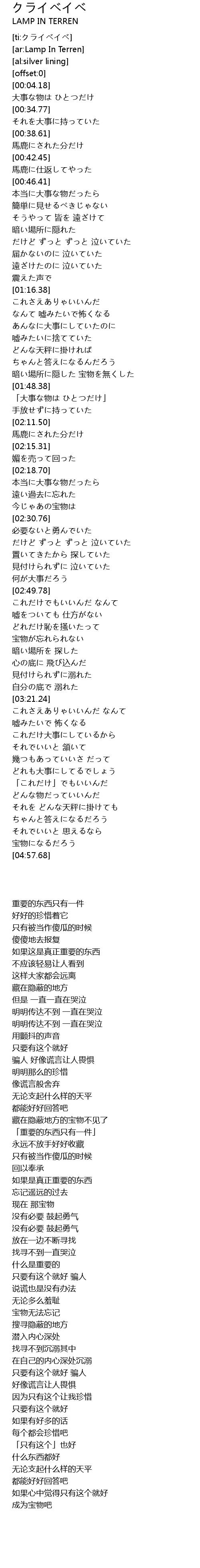 | [01:41.04] | 暗い場所に隠した 宝物を無くした |